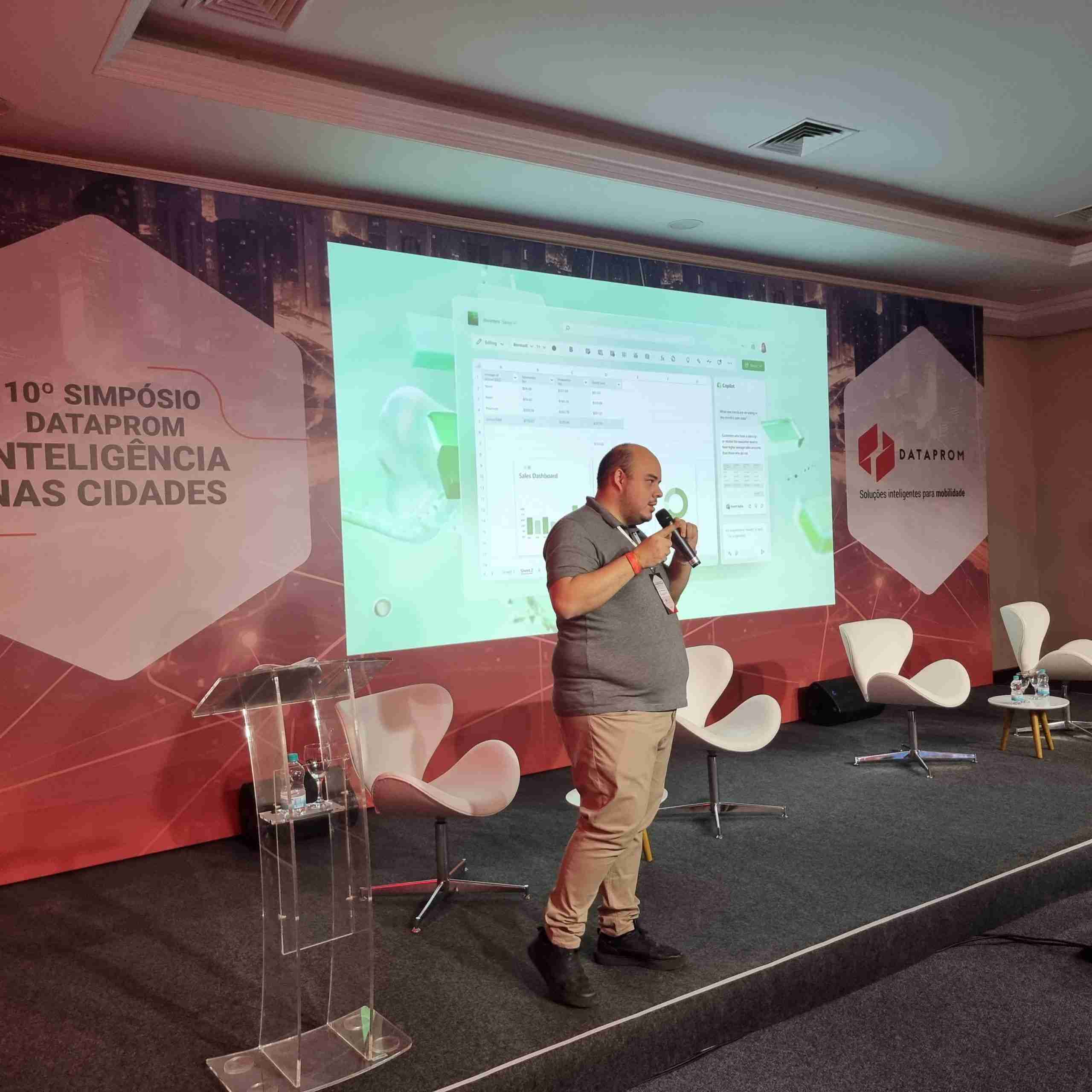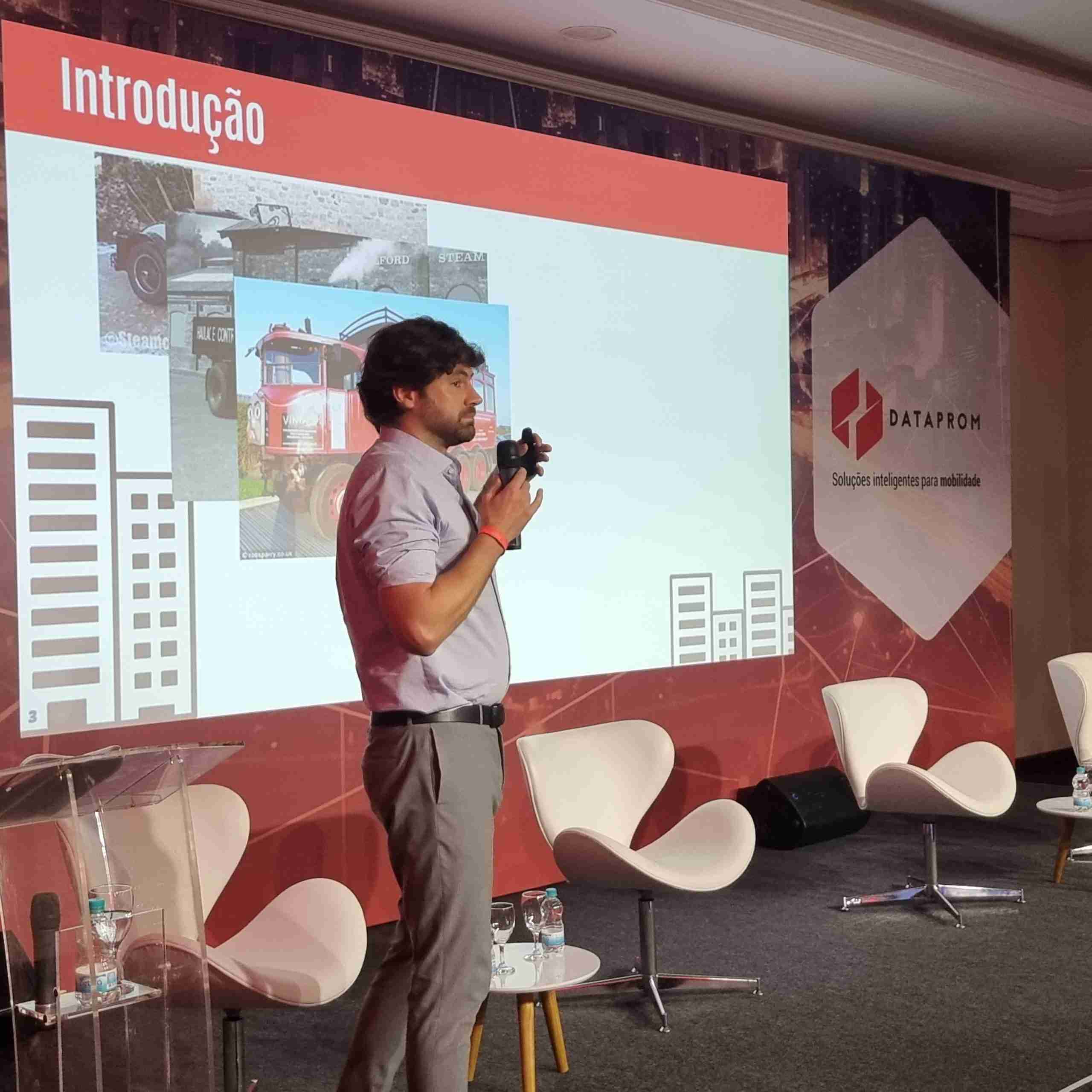 Tal qual a segurança pública, o transporte coletivo para a mobilidade também ganhou destaque no Simpósio. Para tanto, promovemos um painel para debater o estágio atual dos projetos de eletrificação da frota de ônibus com a participação da Urbs e da COPEL. Em seguida, o Gerente de Software da DATAPROM, Rodrigo Ramos, apresentou a importância da geração de dados a partir da Bilhetagem Eletrônica para a gestão e operação do transporte.