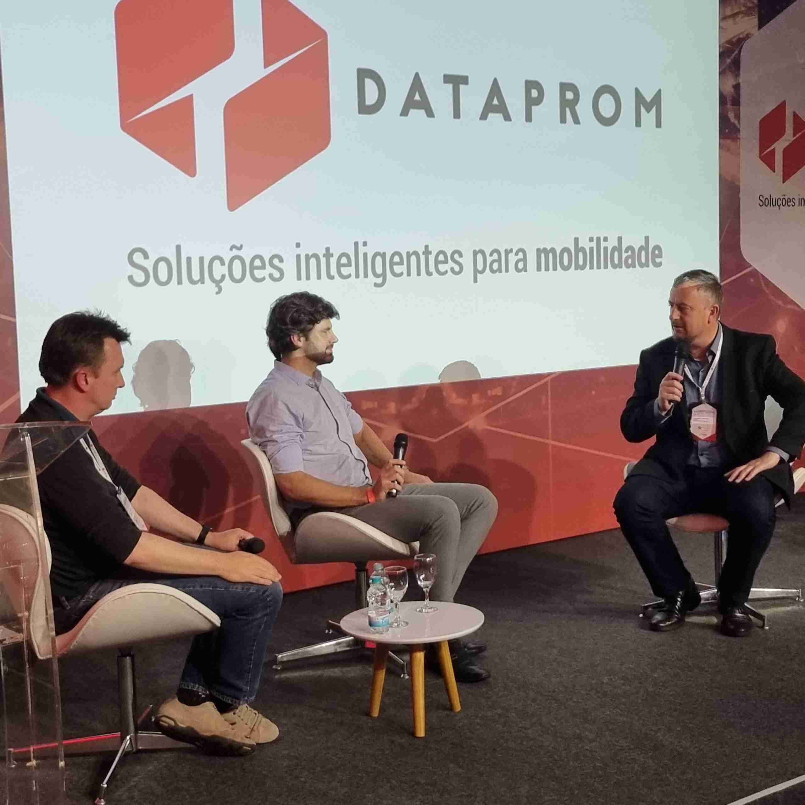 Jailson Felisbino – Vice-presidente de Desenvolvimento de Negócios e Vendas da DATAPROM; Evandro Ferreira – Secretário de Tecnologia da Informação de Foz do Iguaçu; Marcello Santos – Gestor de Tecnologia da Agência Curitiba de Desenvolvimento; Willian Zarpellon – Head de Experiência do Usuário da Eve Air Mobility; Júnior da FEMAC – Prefeito de Apucarana e Diretor da Frente Nacional de Prefeitos; Thiago Marquardt – Engenheiro da Urbs; Márcio Hamerschmitd – Gestor de P&D da COPEL; Rodrigo Ramos – Gerente de Engenharia da DATAPROM; Alceu Dal Bosco Jr – Coordenador de Mobilidade da URBTEC; Coronel Péricles de Mattos – secretário de Defesa Social e Trânsito de Curitiba; Carlos Ávilla – porta-voz da Sentry; Thiago Suzue – Channel Sales Manager da Dahua; Fabiano Arruda – coordenador do CIOSP de Campo Largo; Samir Moussa – secretário de Ordem Pública de Campo Largo;